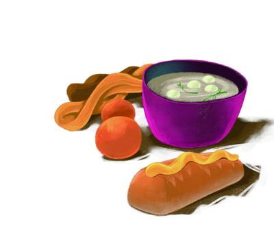 保姆带卷毛头又来到面包房,那儿有羊角面包、豆沙面包、鸡蛋面包、葱油面包、热狗面包……卷毛头还是一边看一边摇头:“都不是从来没有吃过的东西!”