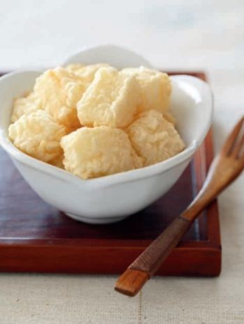 ★ 裹糊时千万不要着急,要将脆皮糊均匀地裹到奶糕的外皮上再放到油锅中煎炸,以免在炸的过程中奶汁溢出;或者刚开始炸的时候不要将油温一下子升到那么高,油温要逐渐升高,这样做起来才能万无一失。