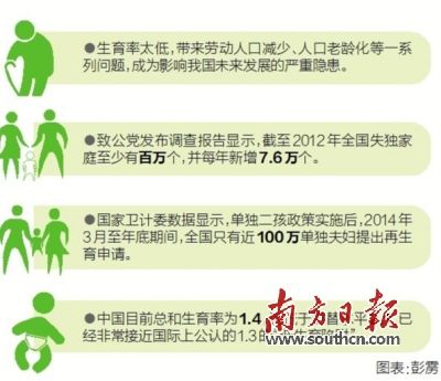 还有不少专家认为,当前我国生育率太低,带来劳动人口减少、人口老龄化等一系列问题,成为影响我国未来发展的严重隐患,全面放开二孩政策显得十分紧迫。