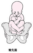 臀先露,虽为纵产式,但是以臀部先露。臀先露在分娩前、分娩时及分娩后的胎儿死亡率是头先露的四倍以上。因为臀先露在早产或胎儿先天畸形时最常见。只有在分娩前确诊臀位,才能更好避免发生并发症。有时在分娩前妊娠37周或38周时,医生还可以通过产妇腹部,转动胎儿,变臀位为头位。由于臀径比头径小,如果臀部先经过产道,产道就不能充分扩张,适应胎头通过。另外,胎头在胎臀后娩出,也不能变形来适应产道。因此,胎儿身体通过产道娩出后,而胎头就可能卡在产道内。